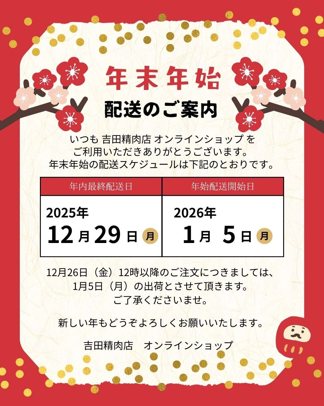 12月26日12時以降のご注文分に関しましては、1月5日より順次発送させていただきます。